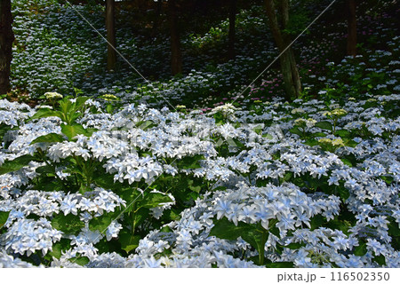 静岡県 可睡ゆりの園 一面の紫陽花