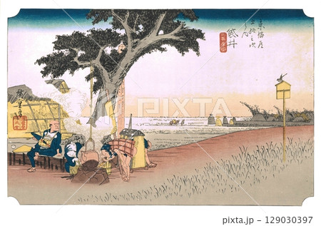 歌川広重 東海道五十三次(保永堂版)#28 袋井 出茶屋図