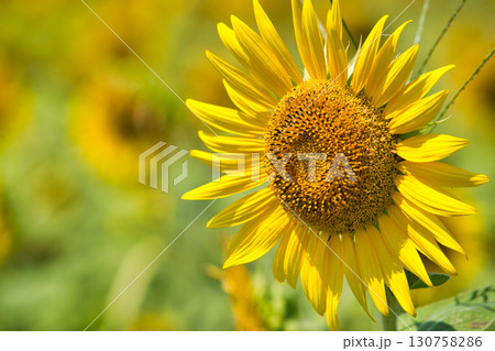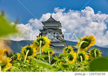 ひまわり畑の中から勝山城