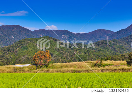新緑と水田と麦秋の勝山城