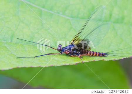 葉の上に止まるオオマダラカゲロウ