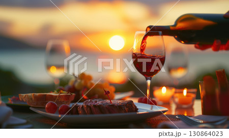 person wine glass background sunset body water scene