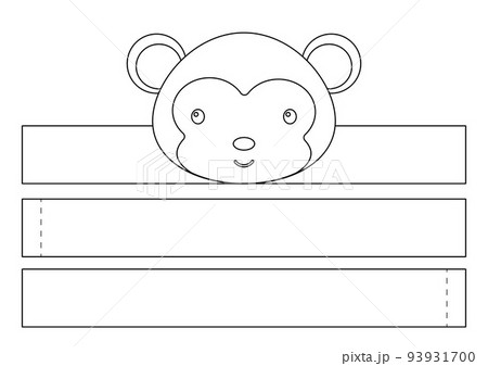 Printable monkey paper crown. Diy cut party ribbon template for birthday, christmas, baby shower. Fun accessory for entertainment. Print, color, cut and glue. Vector stock illustration.