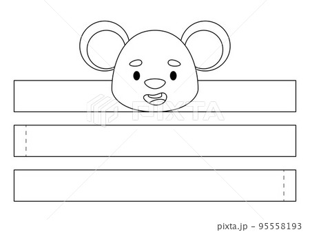 Printable mouse paper crown. Diy cut party ribbon template for birthday, Christmas, baby shower. Fun accessory for entertainment. Print, color, cut and glue. Vector stock illustration