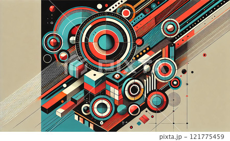 未来的な幾何学パターン - 鮮やかな色彩と複雑なデザインが際立つ抽象アート