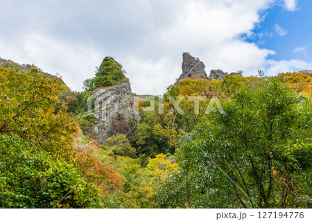 秋の小豆島 紅葉の寒霞渓 裏八景(松茸岩)