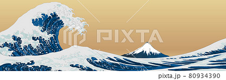 浮世絵風の富士山と大波の背景バナー