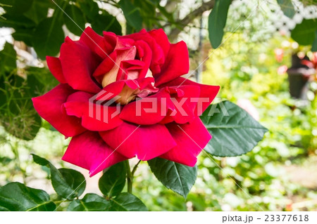 鮮やかな緋赤色が綺麗なバラ【かがやき】