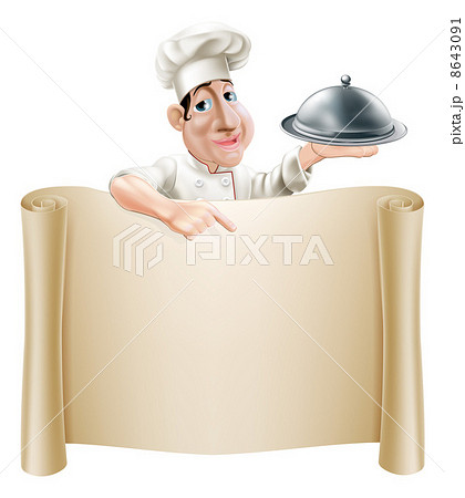 Cartoon Chef Pointing at Menu
