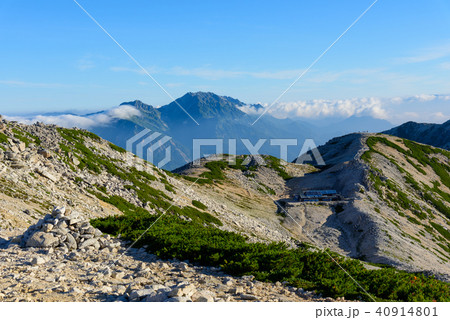 北アルプス 小池新道から槍ヶ岳方面を望む
