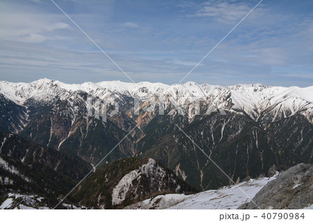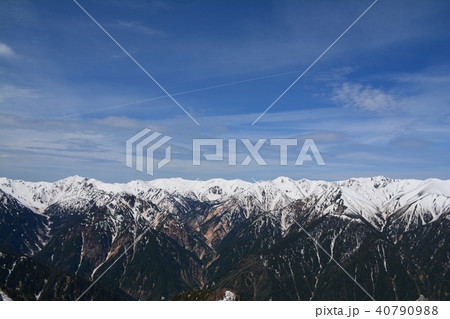 初夏の北アルプス 槍ヶ岳と裏銀座の山並み