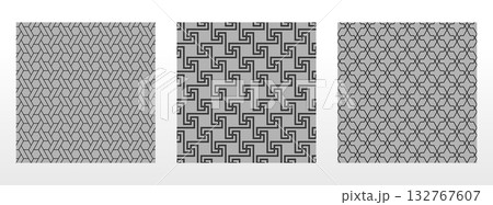 Geometric set of seamless black and gray patterns. Simple vector graphics