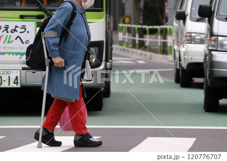 横断歩道を渡る歩行者と路線バス