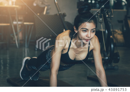 Asian woman intend exercise at gym for healthy