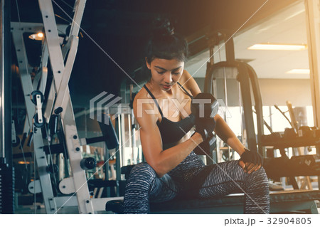 Asian woman intend exercise at gym for healthy.