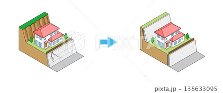 擁壁補強のビフォーアフター 斜面崩壊防止の図解