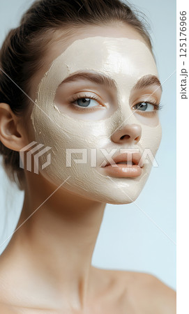 Woman with beige facial clay mask