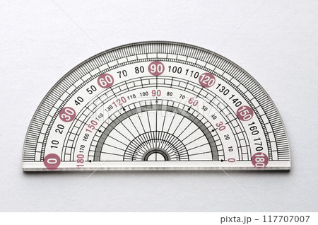 算数で使う三角定規と分度器のシンプルな線画アイコン、アイソメトリックイラスト