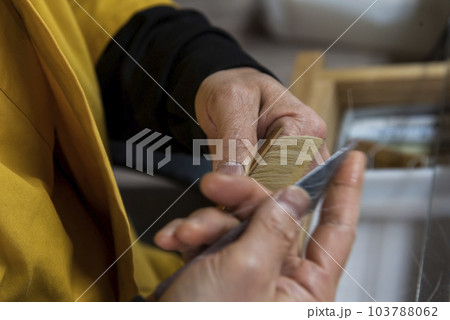 制作途中の化粧筆