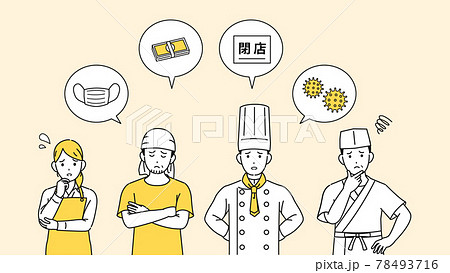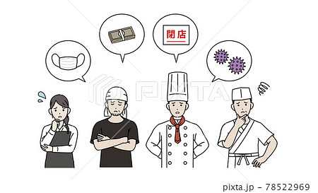 困る飲食店の店員 コロナ禍 経営 赤字 不景気 イラスト素材