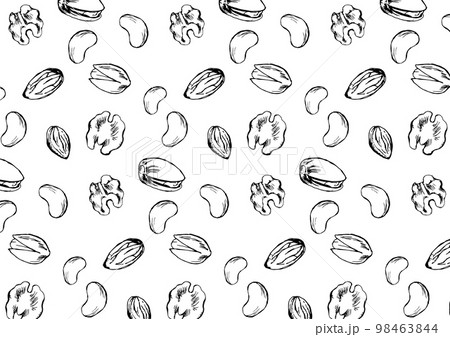 いろんなナッツの背景_モノクロ線画