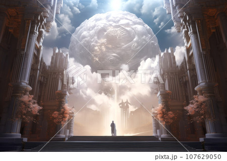 Futuristic space composition with a round portal in the middle.