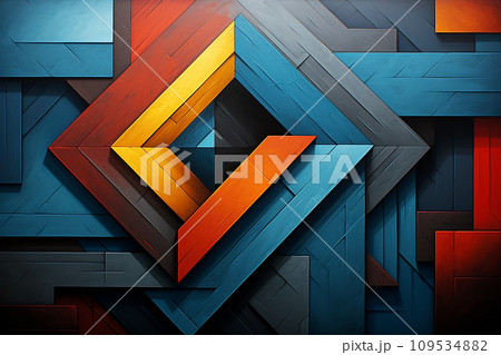 Geometric shapes abstract art, wall background. Vibrant colors, precise compositions