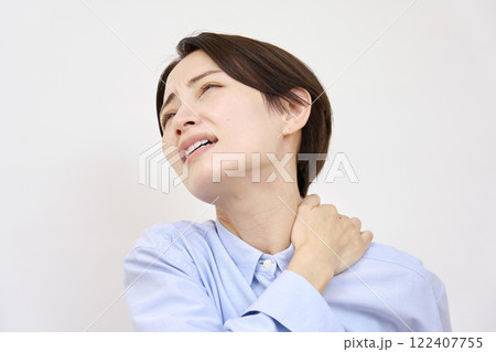 女性 四十肩 白背景