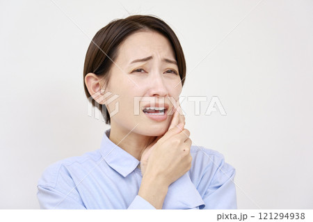 女性 歯痛 白背景