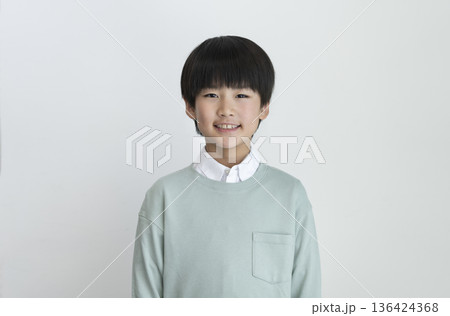 カメラ目線で笑顔の小学3年生の男の子