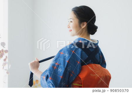 浴衣にたすき掛けの女性 後ろ姿