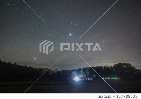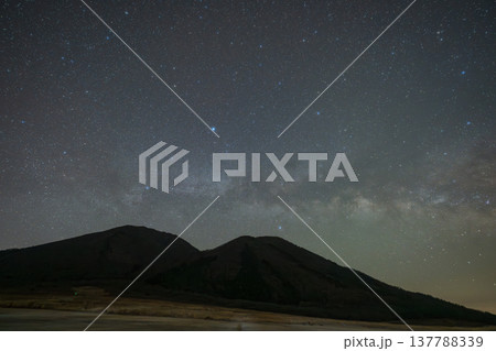 日本の島根県の三瓶山に浮かぶとても美しい春の星空