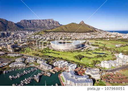 Aerial view of Cape Town Stadium, Kaapstad-stadion, Green Point, in Western Cape, South Africa
