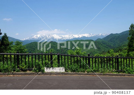 国道459号線・飯豊連峰展望所から残雪の飯豊連峰を望む