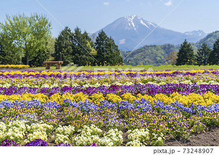 カラフルなパンジーの咲く花の丘(鳥取県)