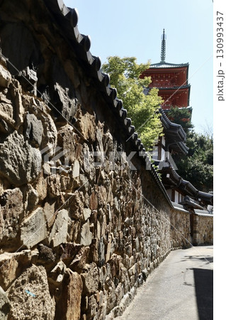 小豆島西光寺誓願の塔と石積みの塀