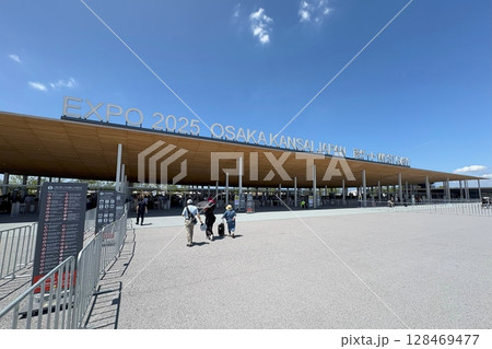 快晴の青空でお客様を出迎える大阪・関西万博の西ゲート入口(日本 大阪府大阪市)