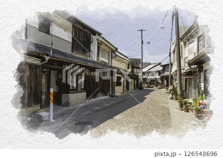 水彩画風 西大寺観音院 三重塔と六角経蔵 岡山県岡山市