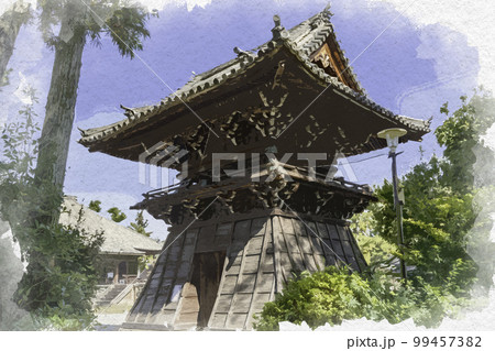 水彩画風 西大寺 鐘楼堂 奈良県奈良市