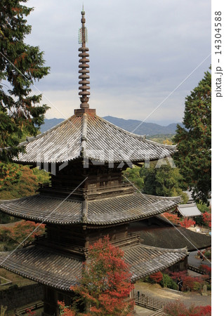 紅葉の常楽寺三重塔 湖南三山 国宝 滋賀県 湖南市