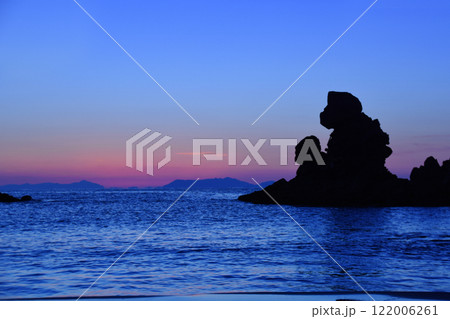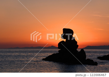 鹿児島県・西方海岸の人形岩とグラデーションが美しい夕景