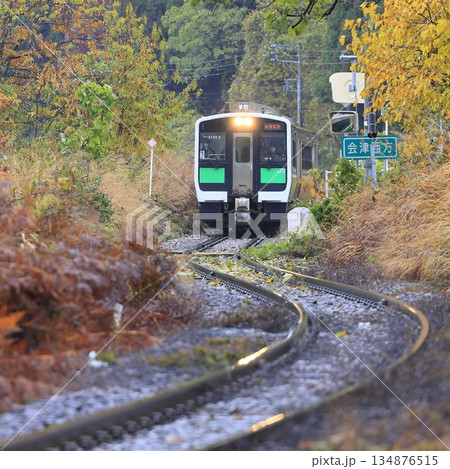 雨降る晩秋の只見線