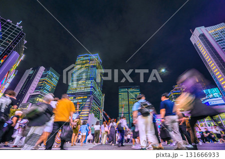 日本の東京都市景観 XEC株…外国人観光客で賑わう渋谷。奥は旧ハチ公改札側…希望の光=2月19日