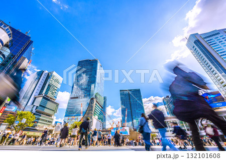 日本の東京都市景観10月3日。インバウンド続く…外国人観光客らで賑わう渋谷の宮益坂下交差点、新時代へ