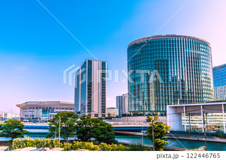 日本の横浜都市景観 賑わうみなとみらいのKアリーナなどを望む