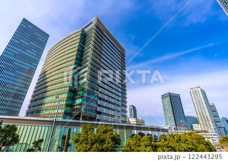 日本の横浜都市景観 8月。横浜駅前の西口五番街などを望む