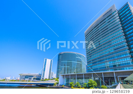 日本の横浜都市景観 みなとみらいのKアリーナなどを望む=23日