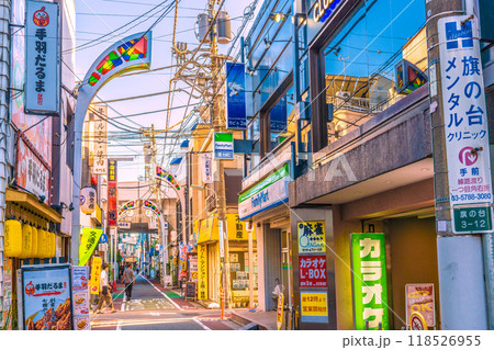 日本の東京都市景観 東急電鉄 旗の台駅前の旗の台三丁目商店街などを望む