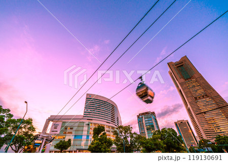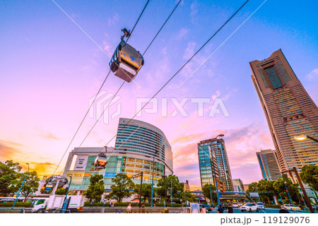日本の横浜都市景観 10月。ロープウェイを望む。奥はYOKOHAMA AIR CABIN桜木町駅方向