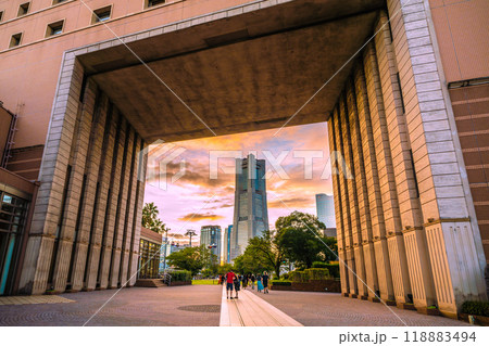 日本の横浜都市景観 10月。桜木町駅前やYOKOHAMA AIR CABIN桜木町駅、みなとみらい…